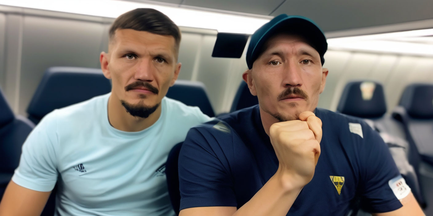 Украинский боксёр Александр Усик, находясь на борту самолёта, связался по видеосвязи с казахстанским коллегой Жанибеком Алимханулы, чтобы поздравить его с победой.