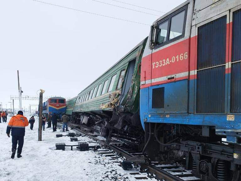 «Сегодня 5 марта ориентировочно в 10:30 в Актюбинской области, Шалкарский р-н, ж/д станция Бершугир, по предварительным данным из-за бокового столкновения с маневровым локомотивом произошел сход тепловоза, вагона №1 и трех колесных пар вагона №2 пассажирского поезда № 317 сообщением «Бишкек-Самара», — говорится в сообщении.