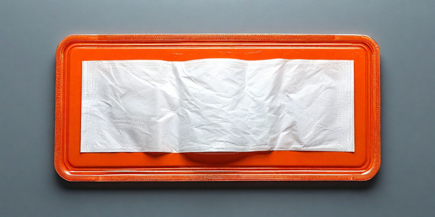Центральный сегмент имеет чашеобразную форму, а на удалённых краях салфетки расположены клеящиеся элементы. Перед использованием контейнер необходимо полностью разложить и прикрепить на стульчак унитаза с помощью клейких элементов.