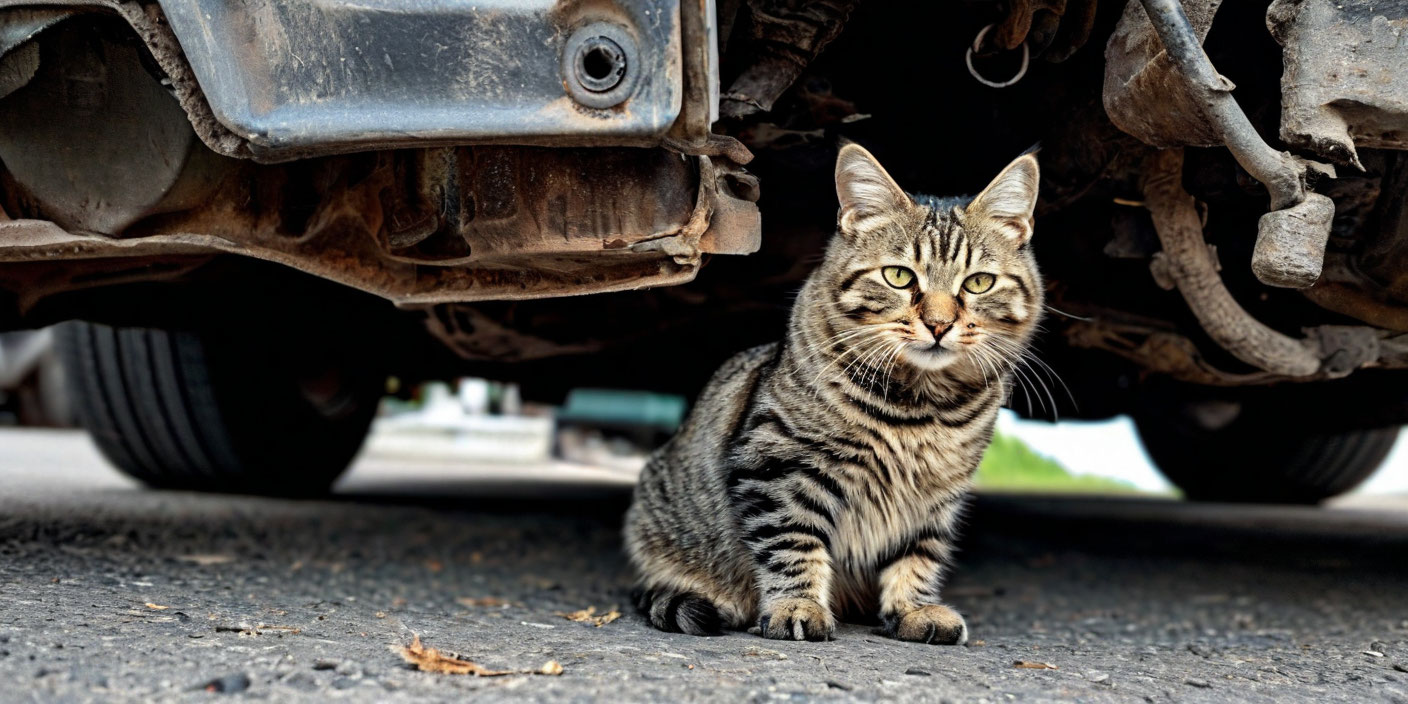 Кот-каскадёр найден под машиной.