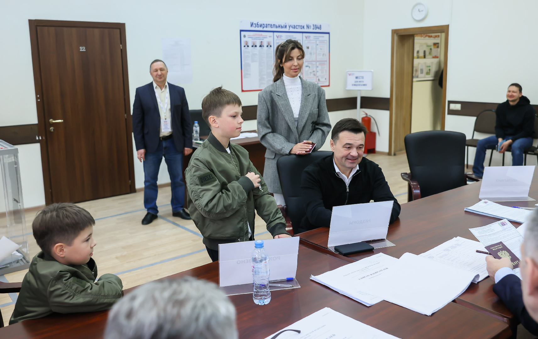 Губернатор Московской области Андрей Воробьев вместе со своей семьей проголосовал на избирательном участке в Одинцовском округе. Глава региона пришел вместе с супругой Екатериной и двумя сыновьями — Георгием и Михаилом.