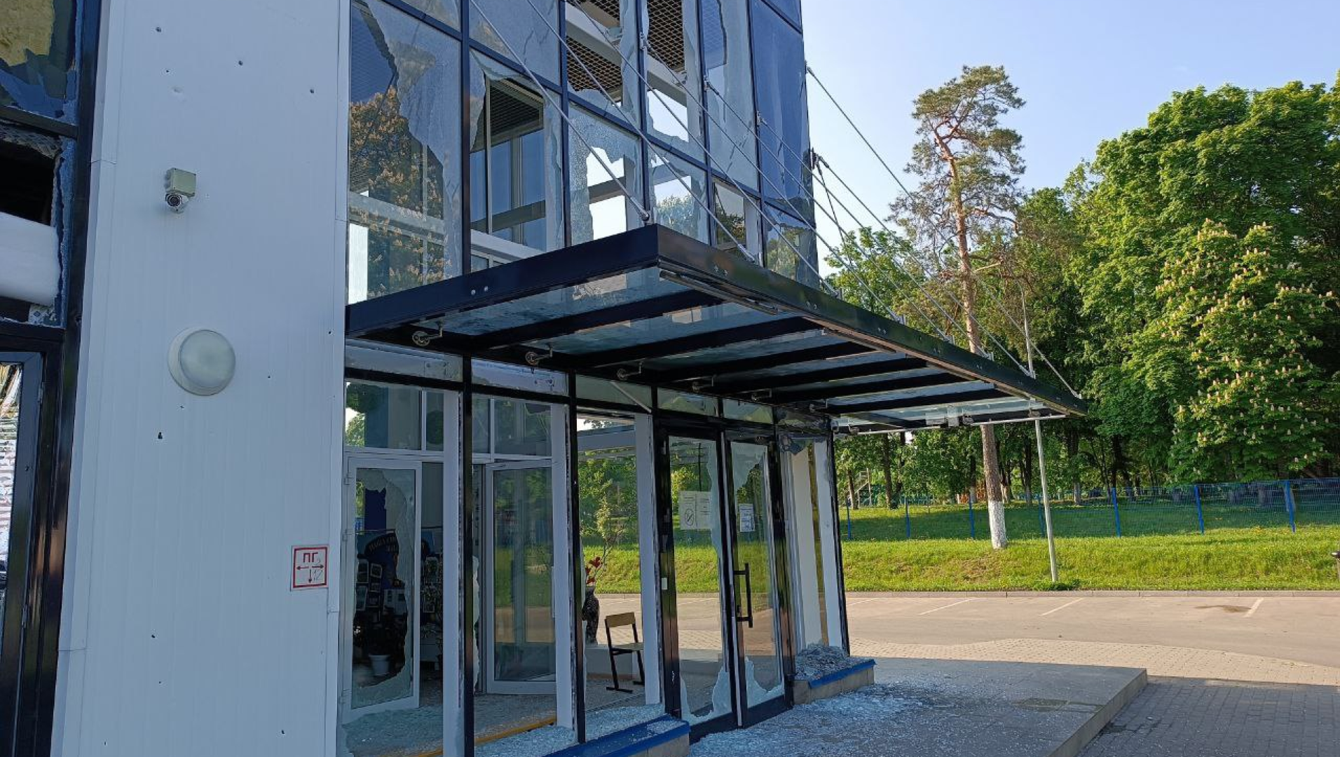 Губернатор Курской области Роман Старовойт опубликовал в Telegram-канале фотографии обстрелянного физкультурно-оздоровительного комплекса в приграничном поселке Глушково.