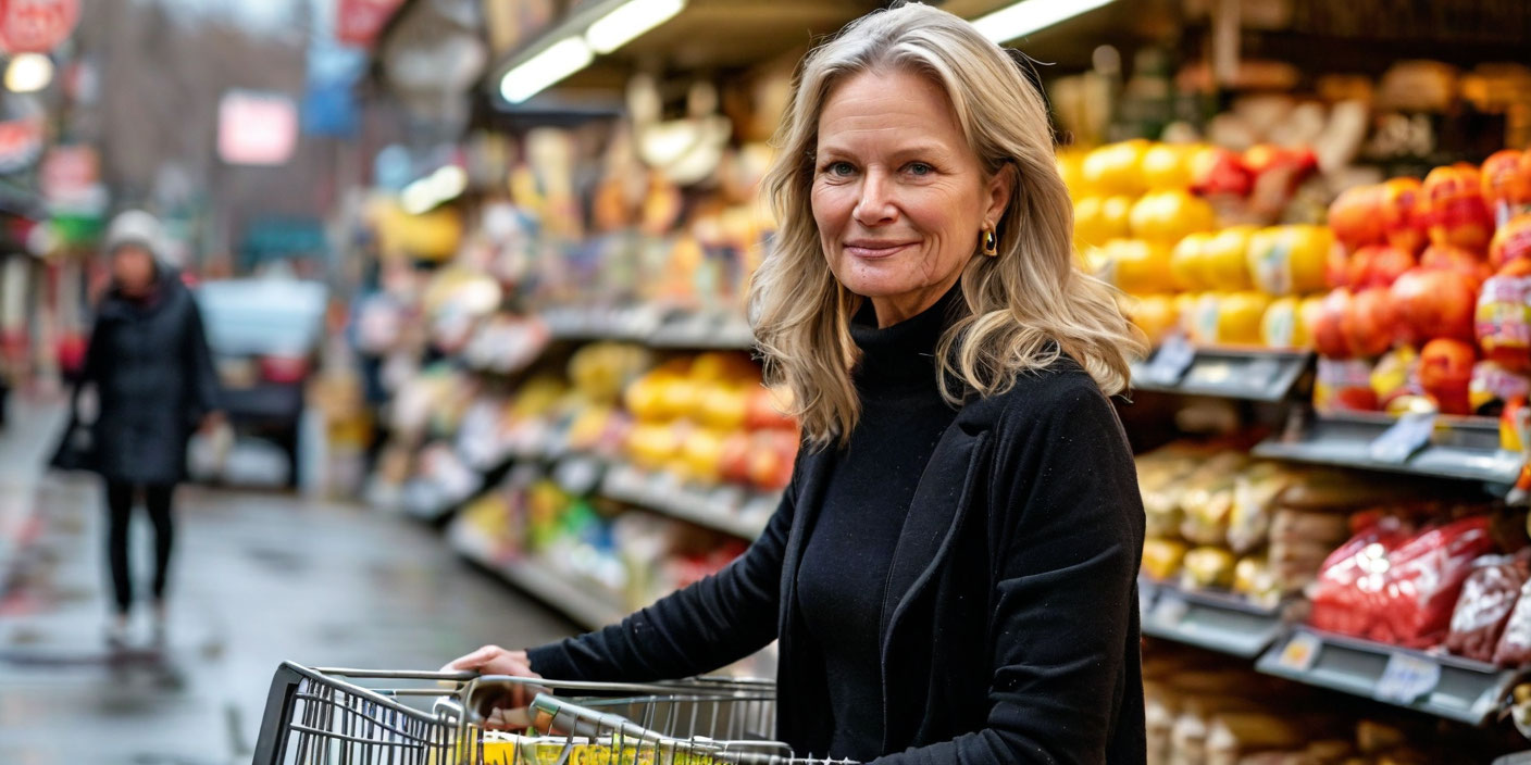 Папарацци запечатлели её у магазина в Коннектикуте с тележкой покупок. На актрисе была белая куртка, чёрные брюки и слипоны на толстой подошве.