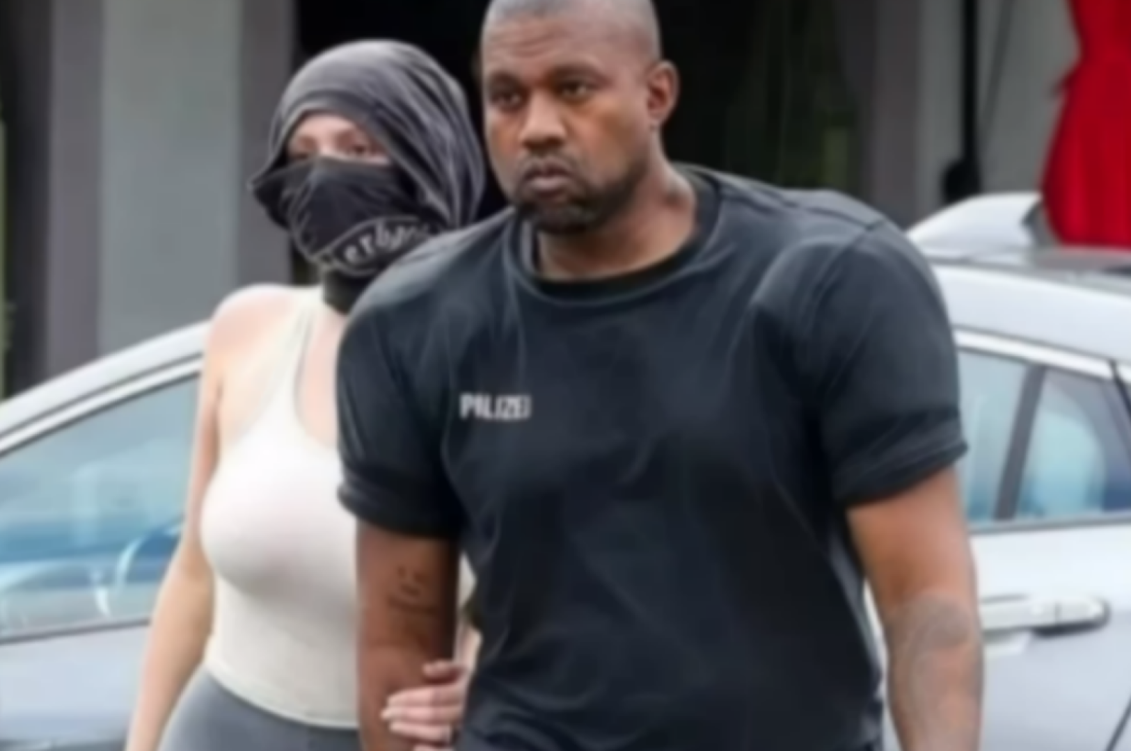 Уточнялось, что правоохранители заинтересовались женой Уэста после того, как она показалась публике в боксерах телесного цвета и топе-сетке, который надела без белья. Ее образ был дополнен зеленой кепкой и балетками.