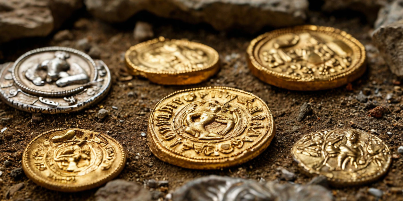 Кладоискатель находит древние монеты в поле