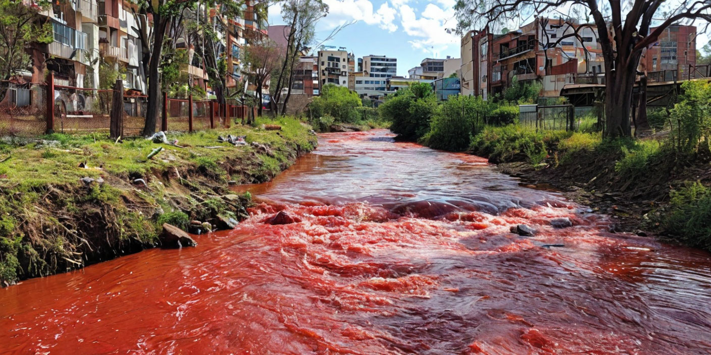 Ручей Саранди окрасился в красный цвет.